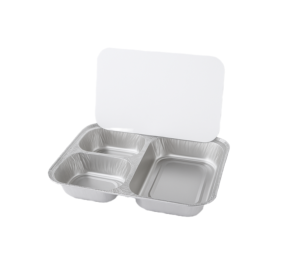3-Compartment Aluminum Foil Tray with Lid